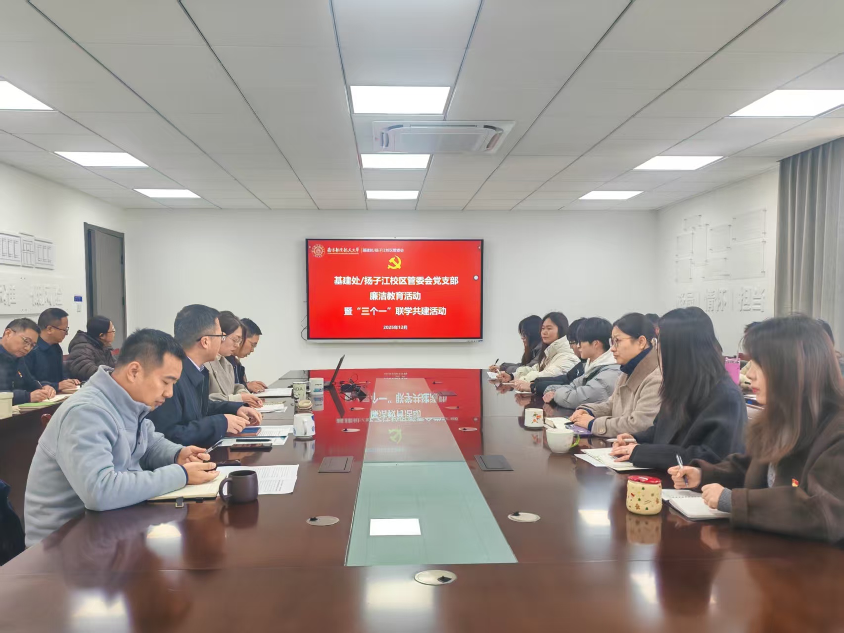 为深入贯彻全面从严治党要求,落实学校党建工作“三个一”联系制度,扎实推进“清廉南航”建设,12月15日,基建处/扬子江校区管委会党支部联合民航学院研究生党支部,以“专题党课+理论研学+警示教育+实地浸润”多维形式,共同开展廉洁教育主题党日活动。本次活动由基建处/扬子江校区管委会党支部书记王炜主持,双方党支部近30名党员参与,校党委常委、副校长崔海涛参会指导。