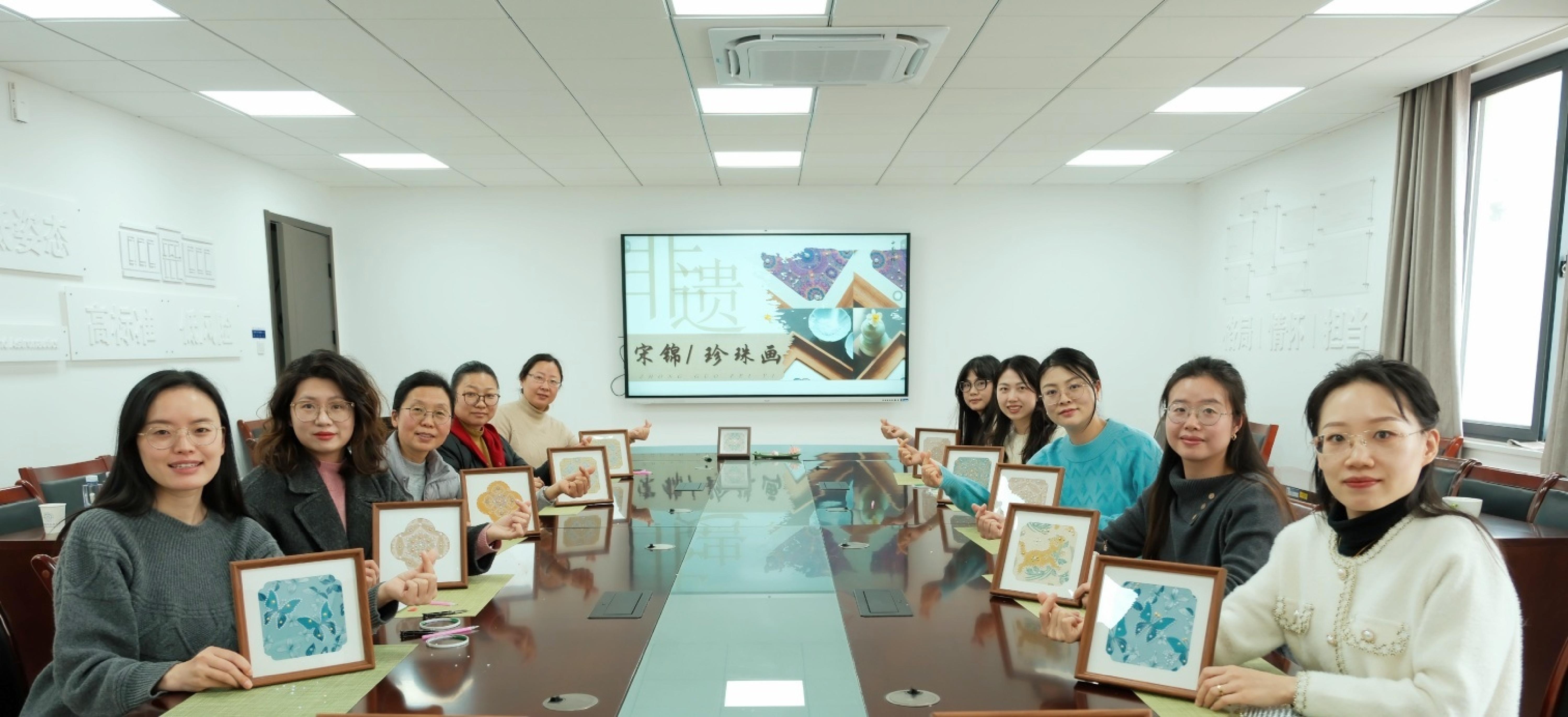 春风送暖,芳华绽放。在第116个“三八”国际劳动妇女节来临之际,为丰富女教职工精神文化生活,感受非遗文化独特魅力,3月5日上午,基建处/扬子江校区管委会举办“锦韵芳华,珠绘春日”非遗宋锦珍珠画制作培训,全处女教职工参加活动。