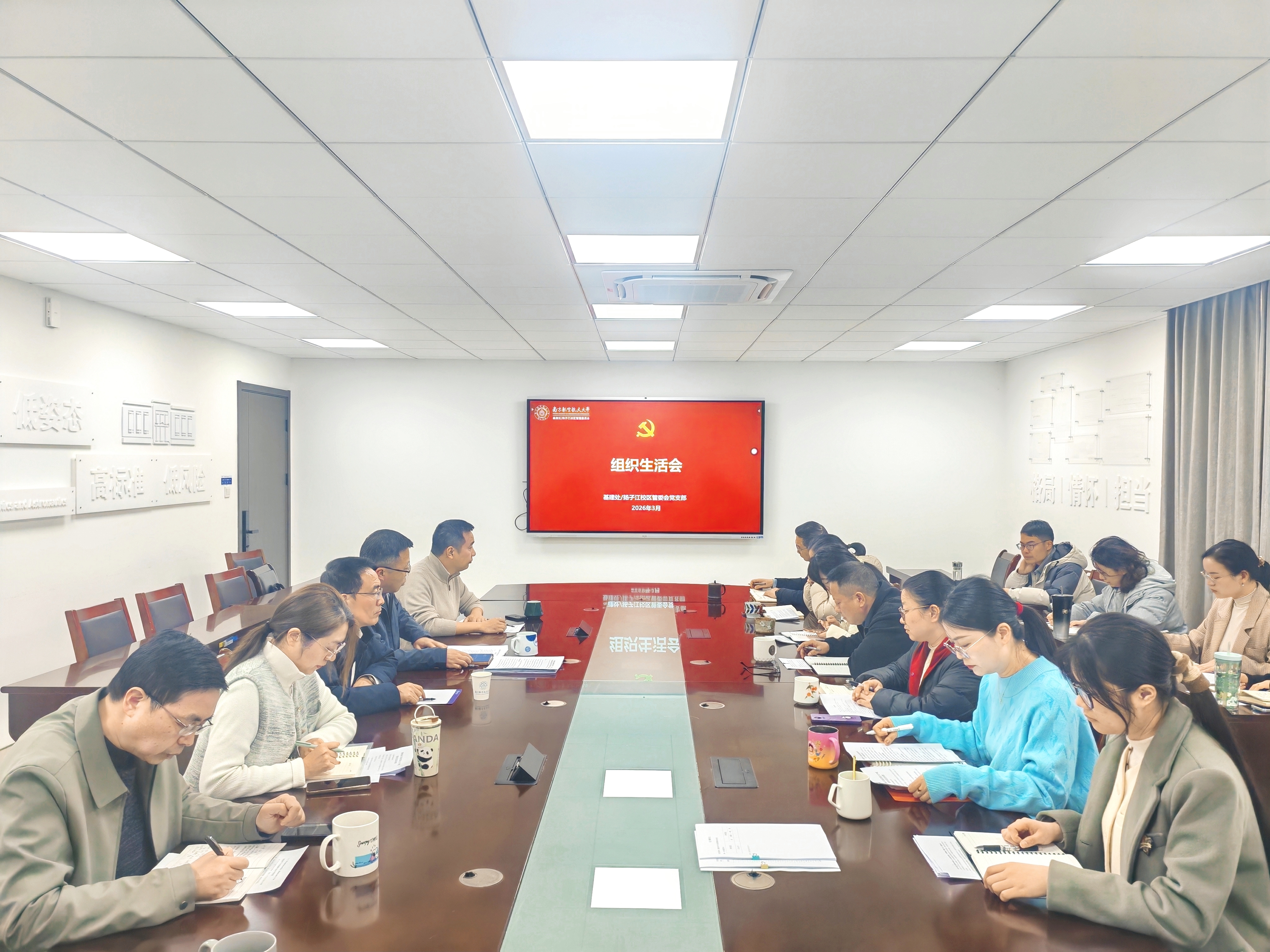 3月10日,基建处/扬子江校区管委会党支部召开2025年度组织生活会。校党委常委、副校长崔海涛参会指导,支部全体党员参加会议,会议由支部书记王炜主持。