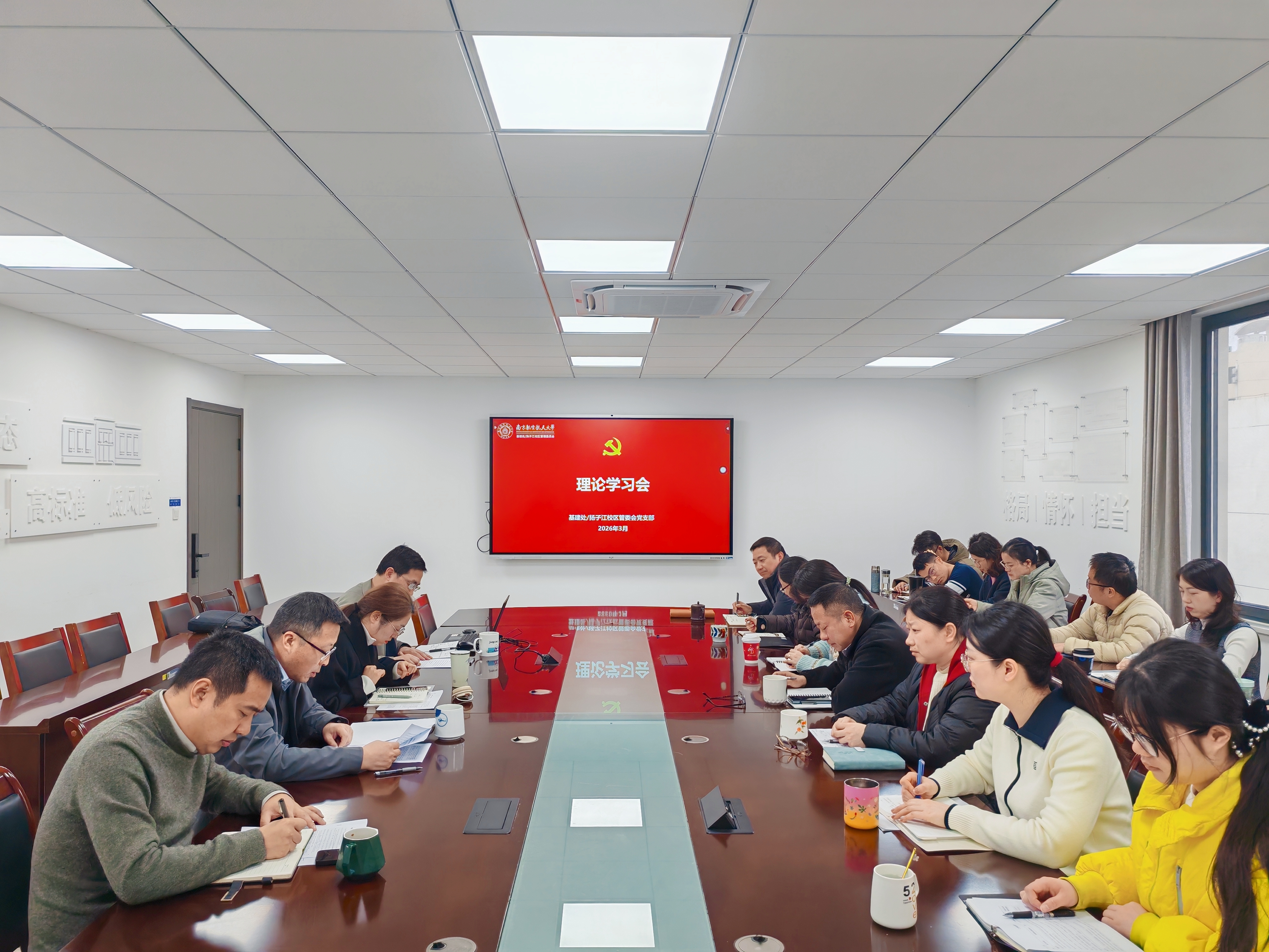 会上,王炜率先领学中央党的建设工作领导小组关于树立和践行正确政绩观学习教育工作的会议精神、中办印发的《关于在全党开展树立和践行正确政绩观学习教育的通知》,并带领全体党员学习《中共南京航空航天大学委员会学习领会贯彻落实习近平总书记重要讲话重要指示批示精神的工作办法》。他指出,开展树立和践行正确政绩观学习教育,是贯彻落实党的二十届四中全会战略部署、推进全面从严治党、保障“十五五”良好开局的重要举措。他强调要牢牢把握立党为公、为民造福、科学决策、真抓实干总要求,立足校区建设与基建管理主责主业,坚持以师生需求为导向、以实绩实效为标尺,把正确政绩观转化为高效推进项目、严控工程质量、提升管理效能、严守廉洁底线的实际行动,以务实作风与过硬举措服务学校高质量发展。