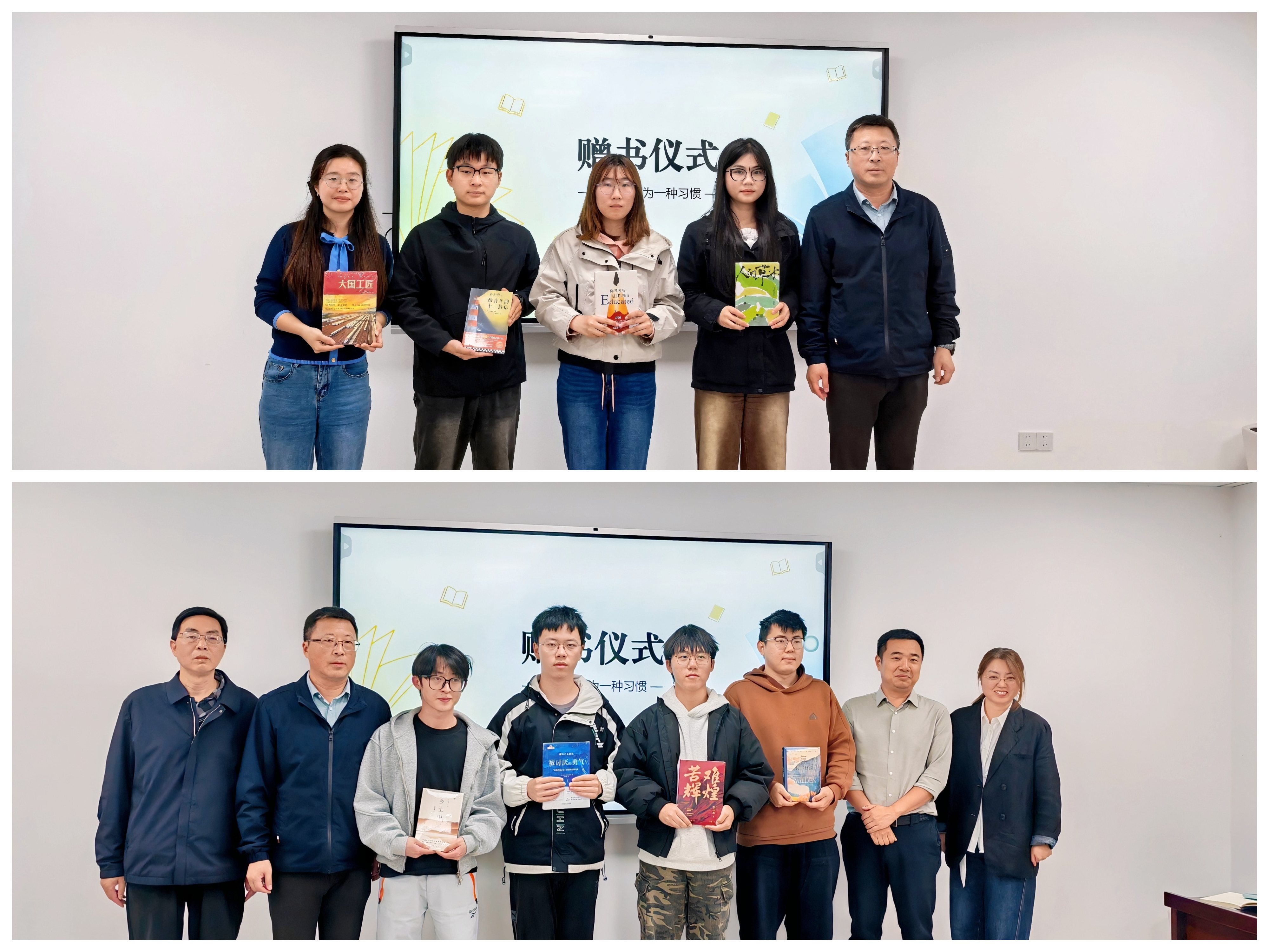 活动最后举行赠书仪式。王炜向读书分享人、青年理论学习小组、学生党支部分别赠送《人间草木》《你当像鸟飞往你的山》《大国工匠》《给青年的十二封信》;班子成员为对口联系宿舍的学生代表赠送《瓦尔登湖》《苦难辉煌》《被讨厌的勇气》《乡土中国》,以书香传递关怀、以经典引领成长,把组织温暖送到师生身边。
